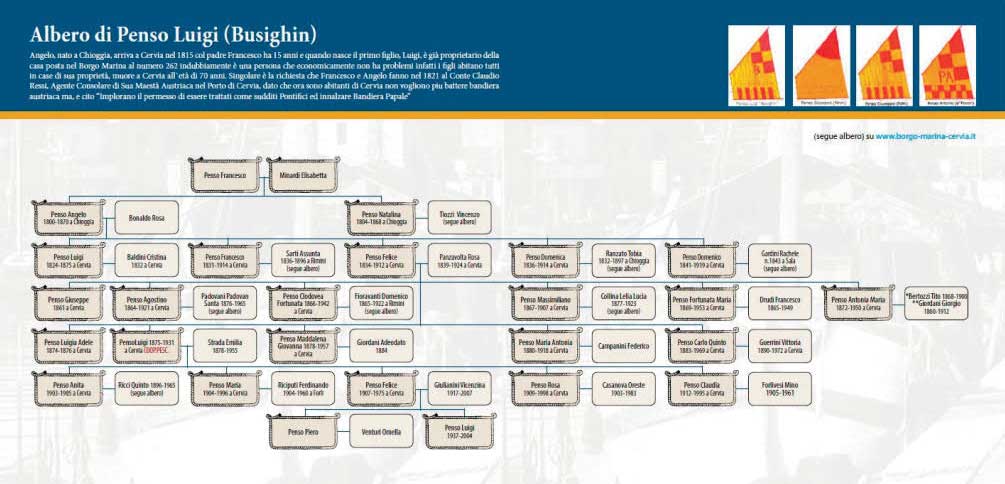 Fiorenzo Farabegli, socio del Circolo Pescatori la Pantofla di Cervia, ha scoperto la propria passione per la storia locale indagando sulle origini della propria famiglia originaria di Montaletto (una frazione di Cervia nell’immediato entroterra): con la sua ricerca condotta negli archivi dei Comuni e soprattutto delle parrocchie, è risalito a ritroso di diversi secoli. Forte di questa esperienza ha ricostruito l’albero genealogico di oltre 30 famiglie di pescatori cervesi dall’anno del loro trasferimento a Cervia, soprattutto da Chioggia, Comacchio e dal polesine e, in misura minore, dalle Marche, comprese le loro case ubicate, nella quasi totalità, nel Borgo Marina. Nel suo lavoro di ricerca ha ricevuto un’ottima accoglienza da parte delle famiglie che gli hanno fornito anche materiali, fotografie e dettagli delle vite degli avi.